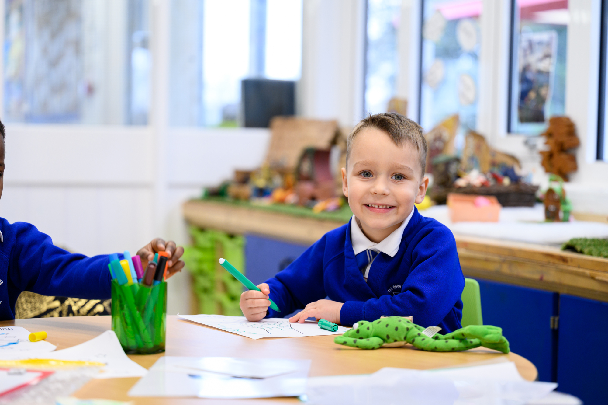 Our classrooms have been designed especially for our younger children. We have a large classroom with a fantastic shared area, allowing more space for a variety of different activities. The children have their own toilets and a covered, well-equipped outside learning area to continue their learning.